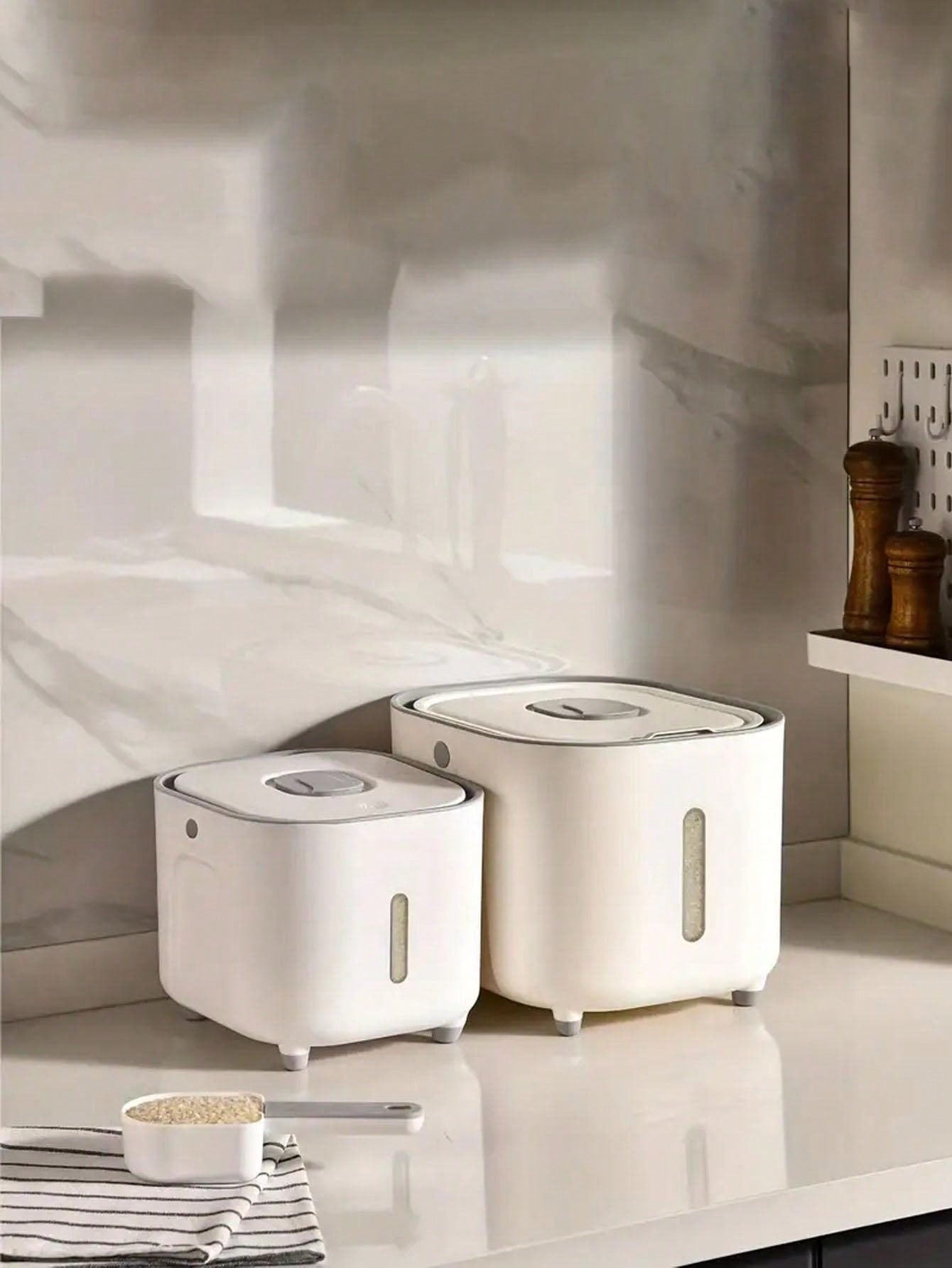 Keep your kitchen organized with this large capacity rice bucket. Made of moisture-proof and insect-proof sealed PP material, it is perfect for storing rice, grain, flour, dog food, and pet food. The handle makes it easy to carry and the white color will complement any kitchen decor. No batteries or power supply required. CE certified for quality and safety. A must-have household item for keeping your dry goods fresh and easily accessible.