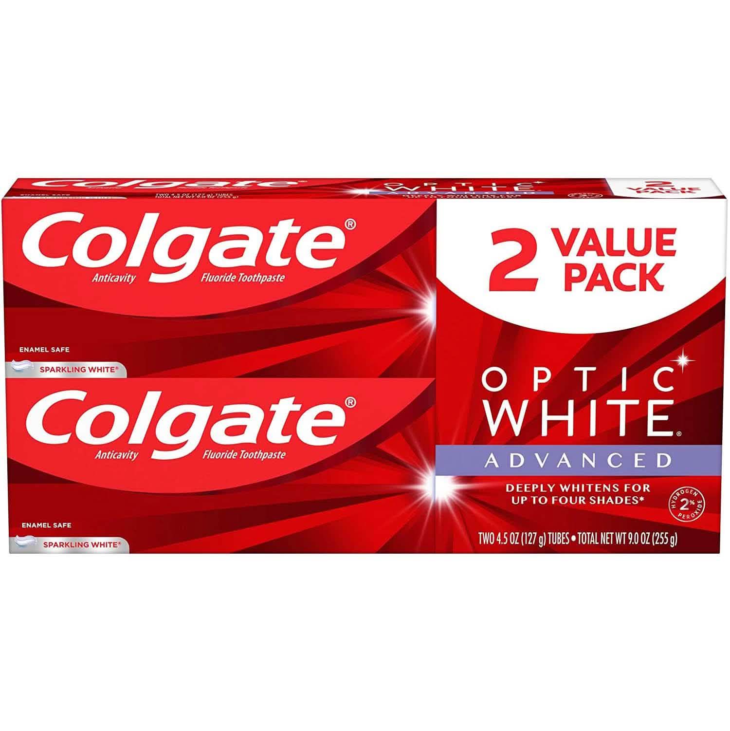 4-Pack: Colgate Optic White Advanced Teeth Whitening Toothpaste, Sparkling White