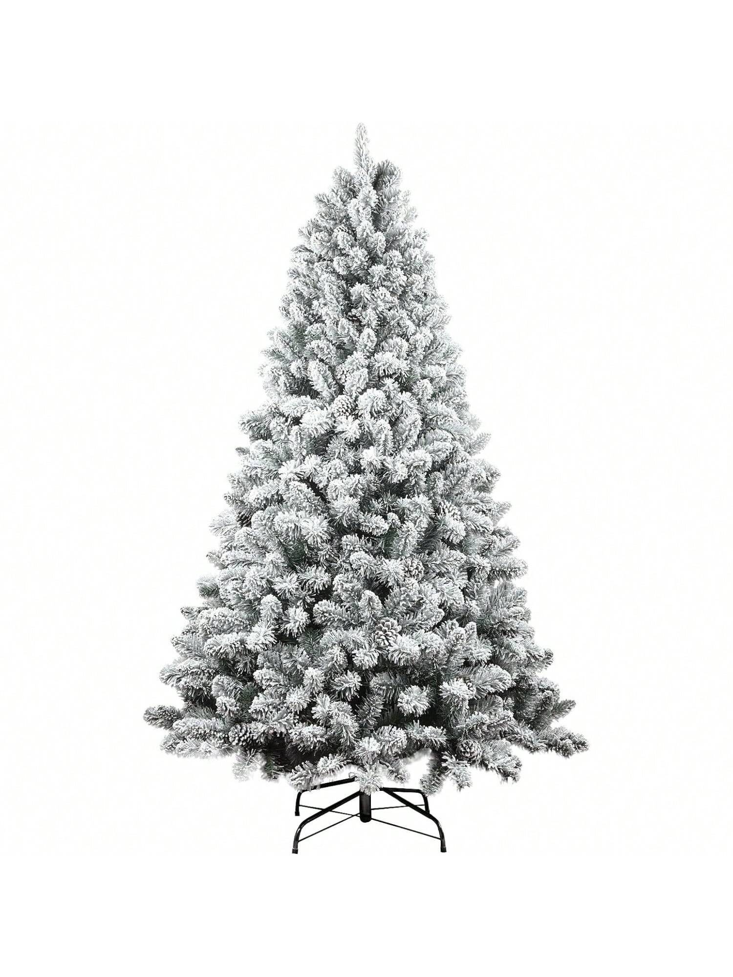 5FT Flocked Artificial Christmas Tree,Flocked Holiday Christmas Pine Tree with Pinne, Snow Flocked Xmas Tree,Party Dration 600 Branch TipsReinforced Metal Base & Easy Assembly by Homehours