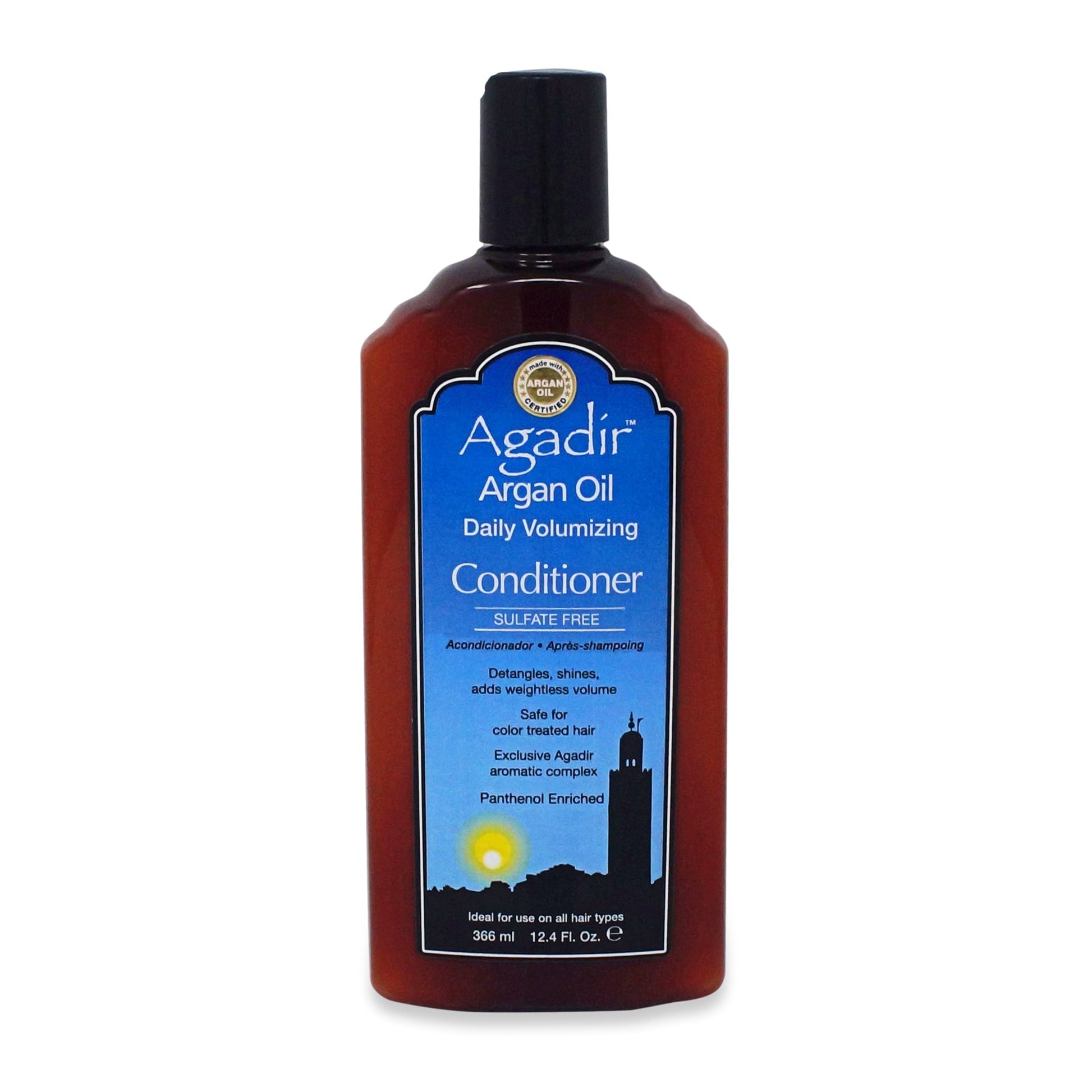 Detangles, Shines, Adds Weightless VolumeIdeal for use on all hair types Safe for color treated hair Exclusive Agadir aromatic complex Panthenol Enriched Sulfate and paraben free Feather light formula... Does not weigh hair down Nourishes, repairs, smoothes, strengthens Humidity resistant, holds styles longer Enriched with antioxidants and vitamin E Ingredients:? Purified Water, Propylene Glycol, Cetearyl Alcohol, Dicetyldimonium Chloride, Behentrimonium Methosulfate, PEG 40 Hydrogenated Castor Oil, Stearalkonium Chloride, Argania Spinosa Kernel Oil, PEG 12 Dimethicone, Simethicone, C12 15 Alkyl Benzoate, Cetyl Alcohol, Stearyl Alcohol, Mineral Oil, Polyquaternium 10, Panthenol, Disodium EDTA, Sodium Benzoate, Potassium Sorbate, Phenoxyethanol, Fragrance Directions:? Apply generous amount of conditioner after using Agadir Daily Volumizing Shampoo.? Work evenly through wet hair.? Leave on 1-2 minutes.? Rinse.? Style.