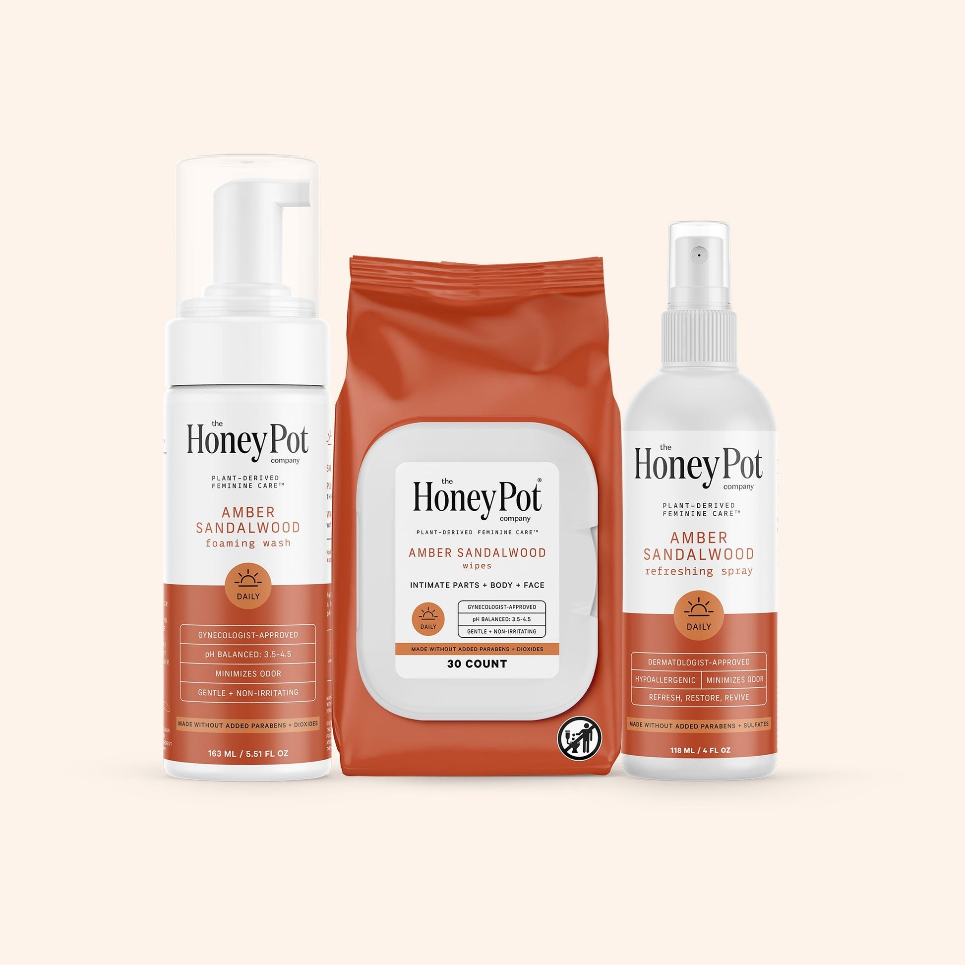 The Daily Ritual vaginal care kit is here to be your vaginal wellness partner. Add these products to your daily routine for a honeypot approved clean feeling.