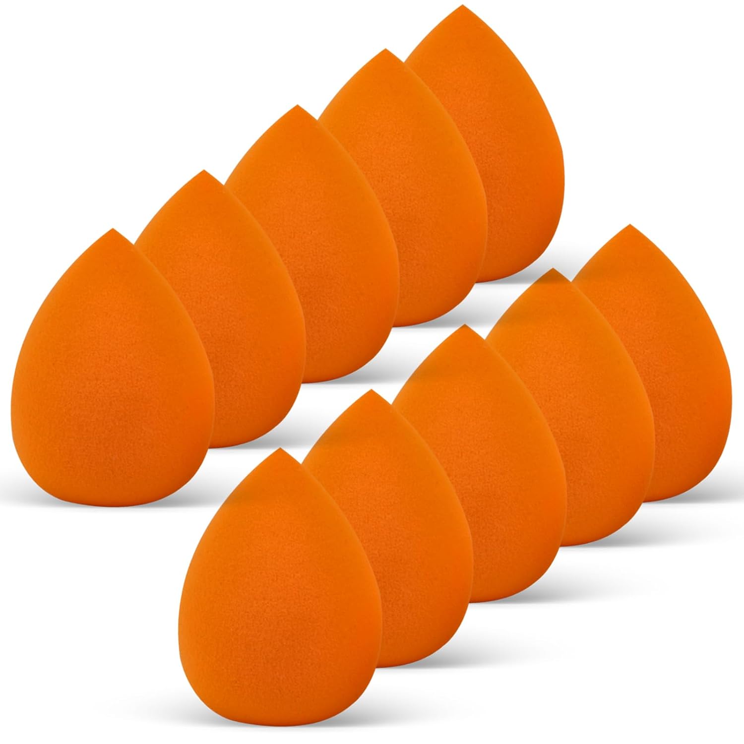 VXZOHOW Makeup Sponges - Latex-Free, High-Definition Foundation Blending Beauty Sponge for All Skin Types, Flawless Application of Liquid, Cream, and Powder Makeup (Dry & Wet Use, 10 Pcs, Orange)